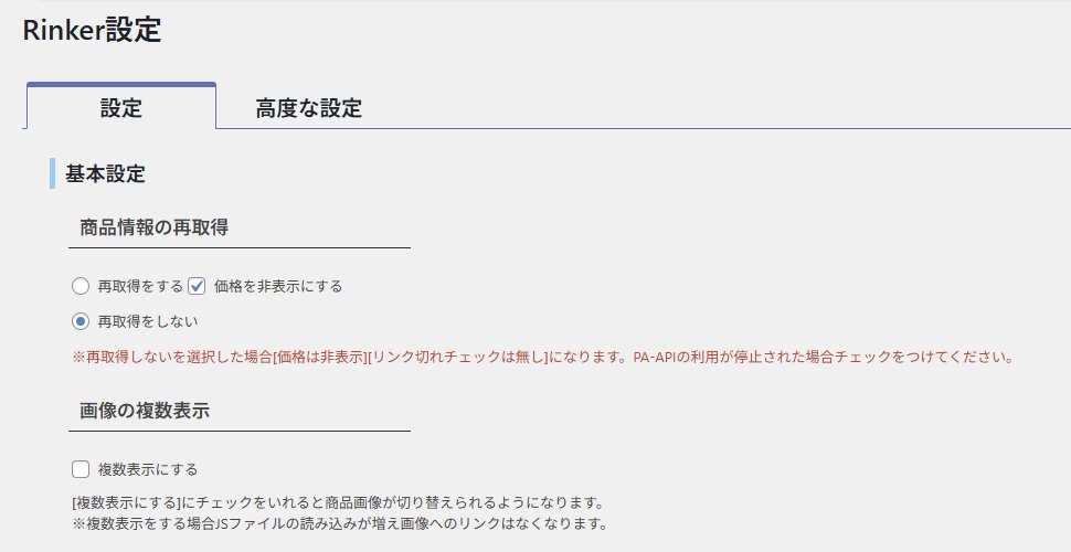 Rinkerなら商品情報の再取得をやめるように設定するといいようです。