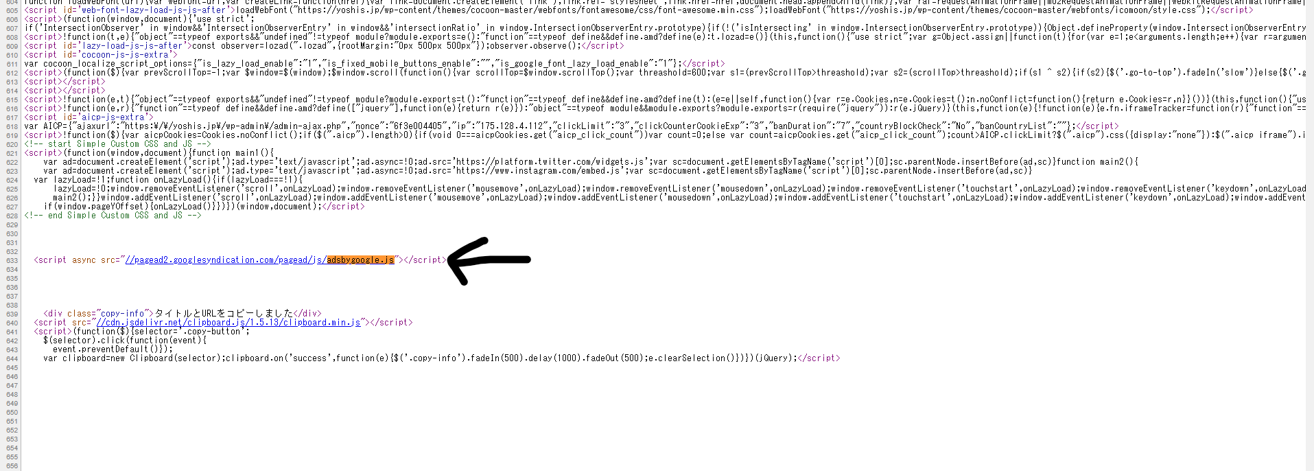 adsbygoogle.jsが勝手に読み込まれる(Cocoon)